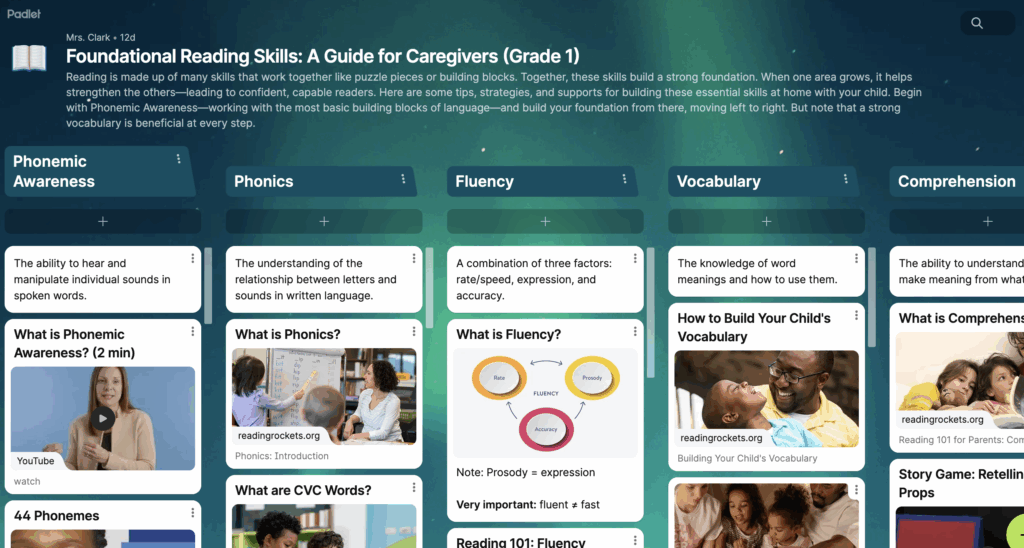 I have created a Padlet with resources for caregivers to help children extend their learning at home in the areas of the Five Pillars of Reading.